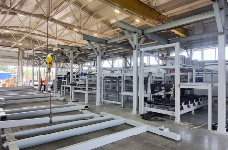 На ПФМ происходи формирование сушильного или плотного пакета готового к сушке в первом случае или к упаковке и отгрузке клиенту. На пакетоформирующей машине установлены 9 карманов выдачи межслойных прокладок, подобное количество исключает провисание в сушильных камерах. Сама ПФМ состоит из свинчивающего, базирующего рольганга, поштучной подачи слоя на лифт, подающих вил и устройства опускания пакета.
